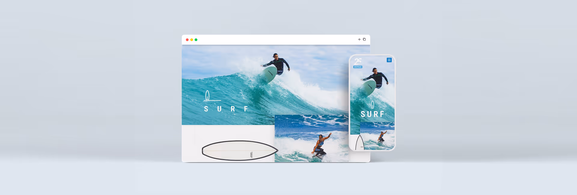 Dinamisme i tecnicitat són inherents als productes Decathlon per als esports d'ones i sobre aquests eixos es vertebran els diferents elements del site, des de l'elecció de les imatges fins als estils i el disseny gràfic, tenint sempre com a referent l'experiència de l'usuari.