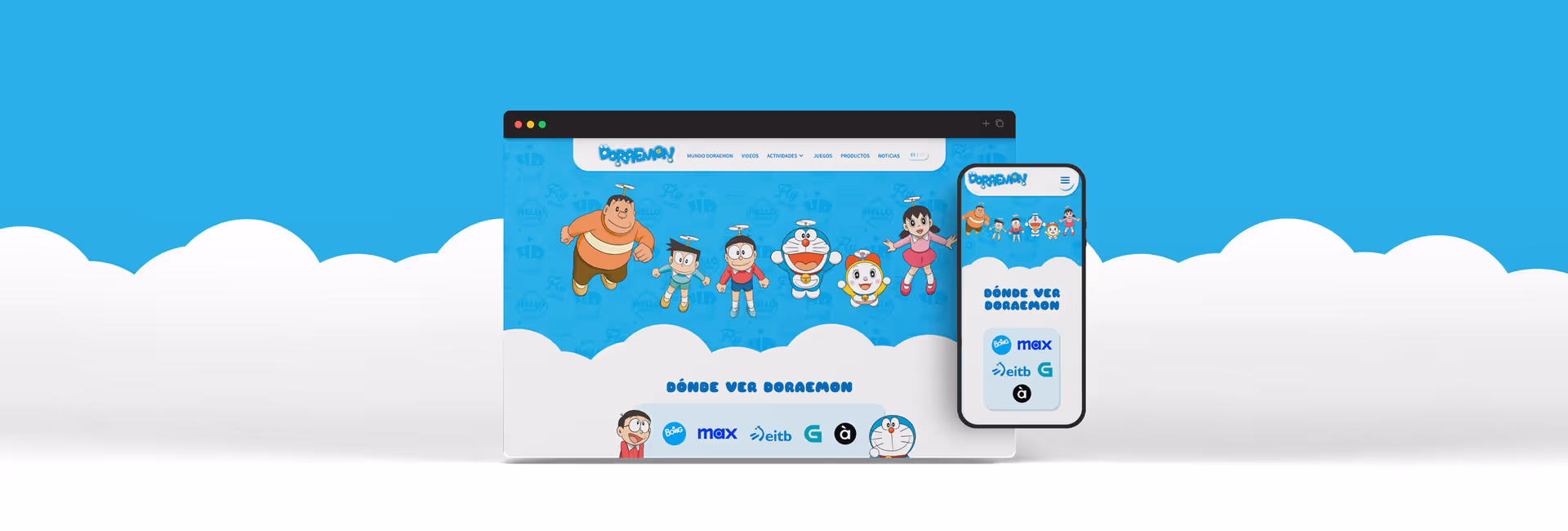 Disseny UI-UX i desenvolupament web de la web oficial de Doraemon a Espanya amb un enfocament lúdic, dinàmic i responsive.
