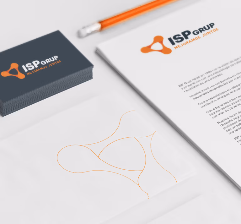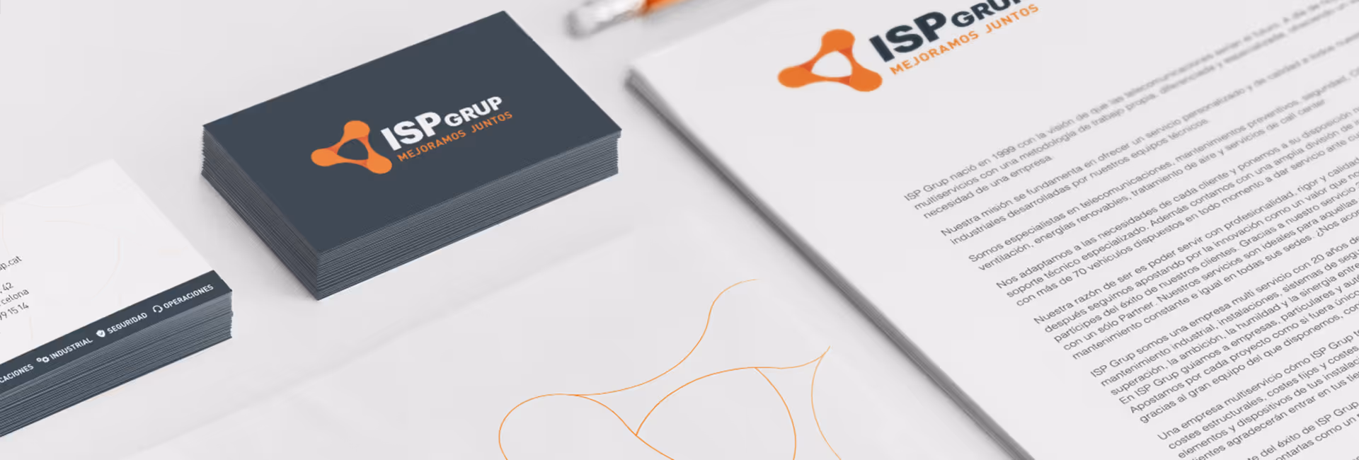 Per a ISP Grup redissenyem la seva imatge basant-nos en aquests principis i recolzant-nos en la arquitectura de marca monolítica perquè l'empresa anava a créixer en serveis sota aquest paraigua de marca que busquem fer conegut per tot tipus d'empreses.