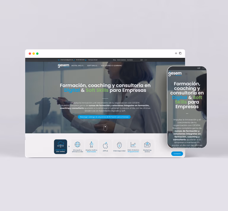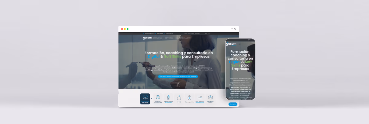 Diseño UI-UX y desarrollo web de Gesem, empresa de formación en digital y soft skills Gesem