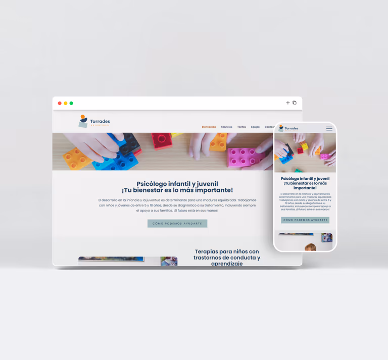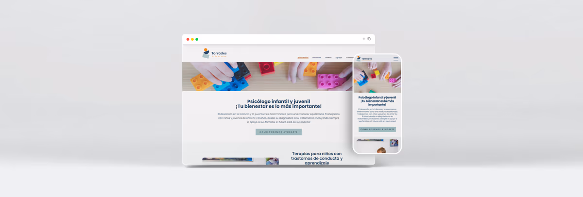 Al frente de Torrades Psicología se encuentra un profesional especializado en la atención a niños y adolescentes, aunque también presta servicios para adultos, y eso debe quedar claramente reflejado tanto en su identidad gráfica como en su site.